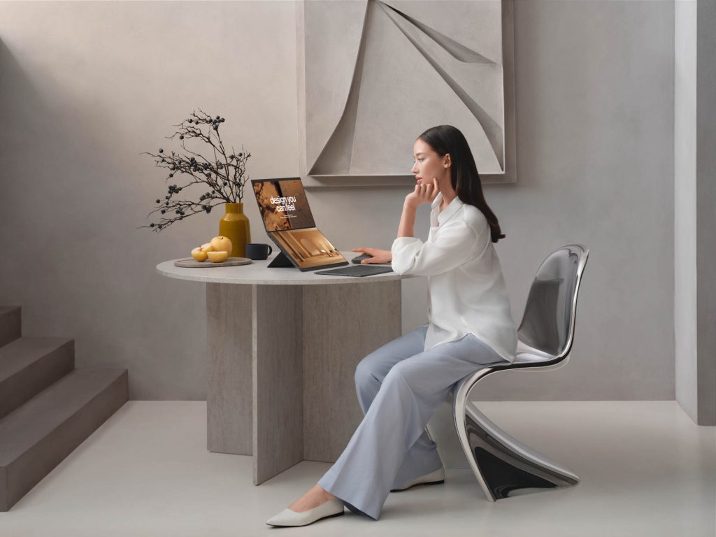 Zenbook DUO ช่วยยกระดับเวิร์กโฟลว์การทำงาน และเปลี่ยนการทำงานหลายอย่างพร้อมกันให้เป็นประสบการณ์การสร้างสรรค์ที่ลื่นไหลไร้รอยต่อ ทั้งหมดนี้อยู่ในตัวเครื่องที่มีขนาดเล็กลง 5% เมื่อเทียบกับรุ่นก่อนหน้า