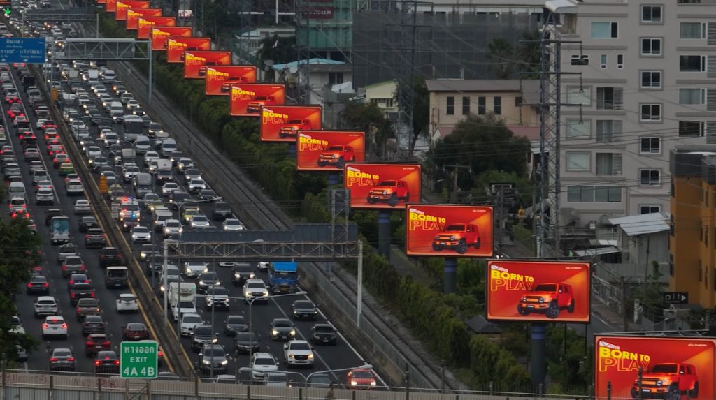 ความพิเศษของการสื่อสารด้วยสื่อโฆษณานอกบ้านให้เป็นเครื่องมือเชิงกลยุทธ์ของ CHERY ในครั้งนี้ คือ การสร้างมิติใหม่ของการโปรโมตรถยนต์ ให้มากกว่าขาย แต่ใช้ความครีเอทีฟดึงดูดสายตาด้วยดีไซน์รถสีส้มสดใส และมุมมองภาพเคลื่อนไหวเสมือนจริง ถ่ายทอดคอนเซ็ปต์ “Born to Play” บนจอ Parc Paragon The 90 Degree และ Interchange 21 — แลนด์มาร์กสำคัญที่สร้างการมองเห็นและไวรัลได้อย่างกว้างขวาง ทำให้เกิดการแชร์ต่อ อีกทั้งยังยึดพื้นที่บริเวณทางด่วนพระราม 4 ด้วย “The 20” ชุดจอดิจิทัลที่เรียงกัน 37 ต้น 74 จอ ระยะทางยาวกว่า 2.5 กิโลเมตร นับเป็นการสร้างปรากฏการณ์ครั้งสำคัญที่เปลี่ยนถนนทั้งสายให้กลายเป็นรันเวย์ของ CHERY V23 เพิ่มโอกาสในการเข้าถึงกลุ่มคนเมืองรุ่นใหม่ได้อย่างครอบคลุมทุก Touch Point