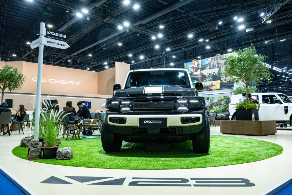 Chery V23 เป็นเอสยูวีพลังงานไฟฟ้า 100% ในดีไซน์ Boxy เป็นเอกลักษณ์ สะท้อนความคลาสสิกผสานความทันสมัย ตอบโจทย์ไลฟ์สไตล์การเดินทางของคนรุ่นใหม่ ออกแบบมาให้ขับสนุกภายใต้แนวคิด “Born To Play” ดีไซน์ภายนอกดึงดูดทุกสายตาด้วยกันชนหน้า-หลังทรงมน ซุ้มล้อและบันไดข้างที่เสริมความเท่ พร้อมกล่องเก็บสัมภาระบริเวณประตูท้ายที่ได้รับแรงบันดาลใจจาก LEGO ความสูงใต้ท้องรถถึง 210 มม. มั่นใจขับขี่ได้ทุกเส้นทาง มาพร้อมล้ออัลลอยสีดำรมควันขนาด 19 นิ้วสำหรับรุ่น PLAY และ PLUS และขนาด 21 นิ้วสำหรับรุ่น PEAK ภายในห้องโดยสารออกแบบให้ทัศนวิสัยกว้าง เบาะคู่หน้าพับได้ 180 องศา เบาะคู่หลังพับราบแบบ 50:50 เพิ่มพื้นที่ใช้สอยได้ตามต้องการ ด้านเทคโนโลยีครบครันด้วยหน้าจอทัชสกรีนขนาด 15.4 นิ้ว รองรับ Apple CarPlay และ Android Auto กล้องมุมมองรอบทิศทาง 540 องศา พร้อมแผงควบคุมที่เลือกโหมดขับขี่ได้ถึง 6 โหมด ด้านสมรรถนะ รุ่น V23 4WD PEAK ขับเคลื่อน 4 ล้อด้วยมอเตอร์คู่ (Dual Motor) กำลังสูงสุด 211 แรงม้า แบตเตอรี่ขนาด 81.76 กิโลวัตต์ชั่วโมง วิ่งได้ไกลสูงสุด 430 กิโลเมตร (NEDC) รองรับการชาร์จ DC สูงสุด 104 กิโลวัตต์ ชาร์จจาก 20% ถึง 80% ภายใน 42 นาที พร้อมระบบ V2L จ่ายไฟให้อุปกรณ์ภายนอกได้สูงสุด 3.3 กิโลวัตต์ ส่วนรุ่น PLAY และ PLUS ขับเคลื่อน 2 ล้อ กำลัง 136 แรงม้า แบตเตอรี่ 59.93 กิโลวัตต์ชั่วโมง วิ่งได้ไกลสูงสุด 360 กิโลเมตร (NEDC) ชาร์จ DC สูงสุด 85 kW จาก 20% ถึง 80% ภายใน 36 นาที
