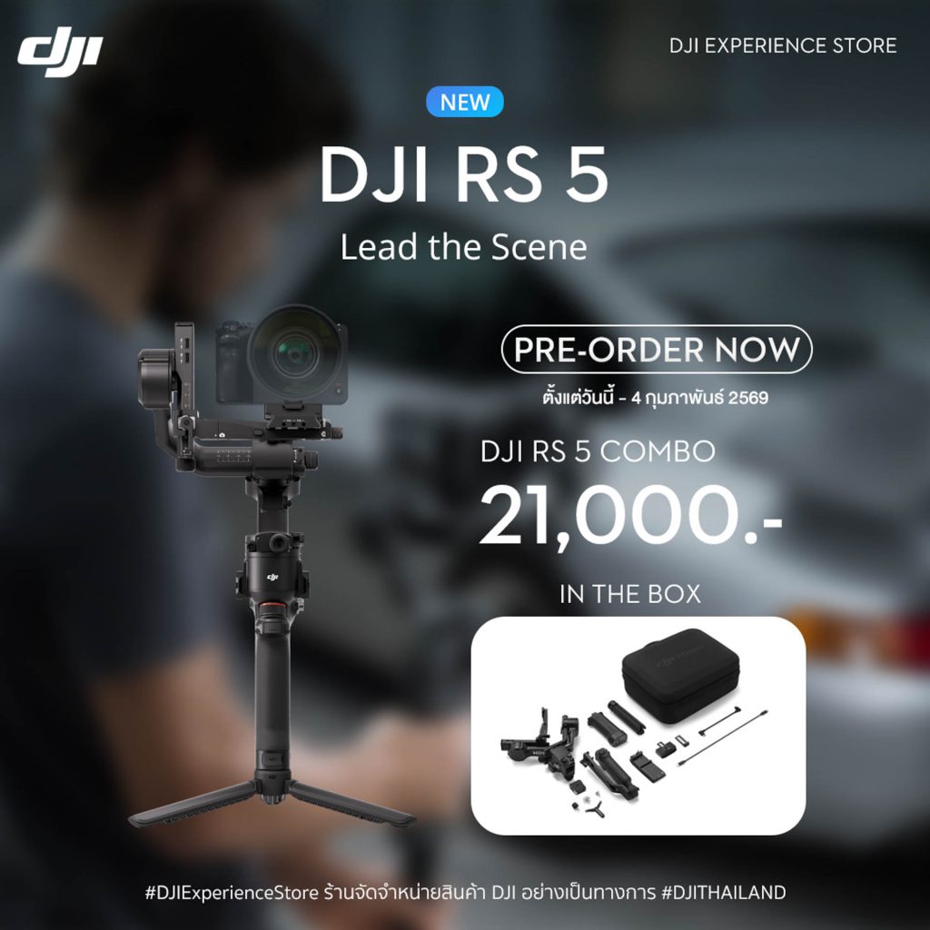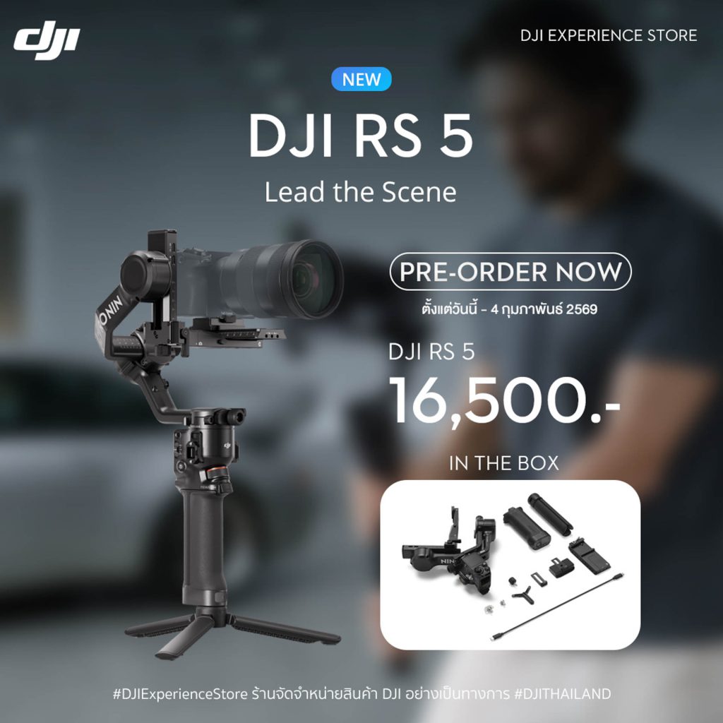 DJI RS 5  พร้อมให้สั่งซื้อตั้งแต่ 29 มกราคม 2569 ที่ DJI Expereince Store  และพาร์ทเนอร์ค้าปลีกที่ได้รับอนุญาต โดยเริ่มจำหน่ายตั้งแต่วันนี้ในรูปแบบต่อไปนี้: