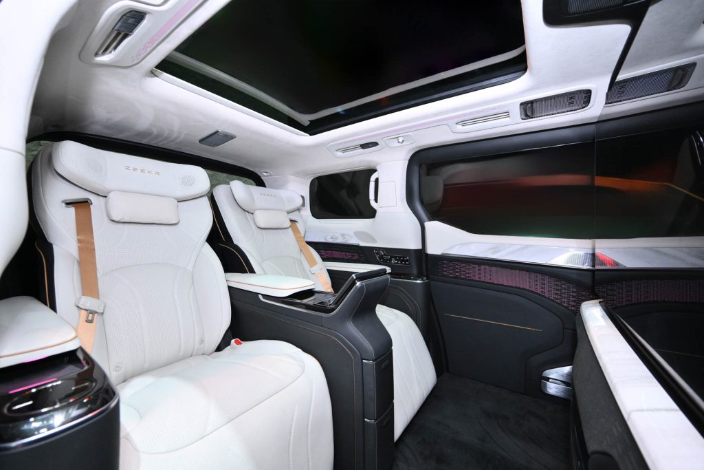 กว้างถึง 1.48 เมตร เบาะแถวหน้าสามารถหมุนได้ถึง 270 องศา คอนโซลกลางปรับตำแหน่งได้เพื่อให้ผู้ใช้งานสามารถปรับเปลี่ยนรูปแบบที่นั่งภายในห้องโดยสารได้อย่างอิสระ ขับเคลื่อนด้วยขุมพลังจากมอเตอร์ไฟฟ้าคู่กำลังสูงสุด 416 แรงม้า แรงบิด 440 นิวตันเมตร และแบตเตอรี่ขนาด 102 กิโลวัตต์ต่อชั่วโมง สามารถวิ่งได้ไกลสูงสุด 700 กิโลเมตร ต่อการชาร์จเต็มหนึ่งครั้งตามมาตรฐาน CLTC พร้อมเทคโนโลยี ZEEKR AD เสมือนการขับขี่อัจฉริยะ ไม่ว่าจะเป็นการถอยจอดอัตโนมัติ การเตือนมุมอับสายตา หรือแม้แต่การเตือนการชนจากทางด้านหลัง เพิ่มความมั่นใจตลอดการเดินทาง