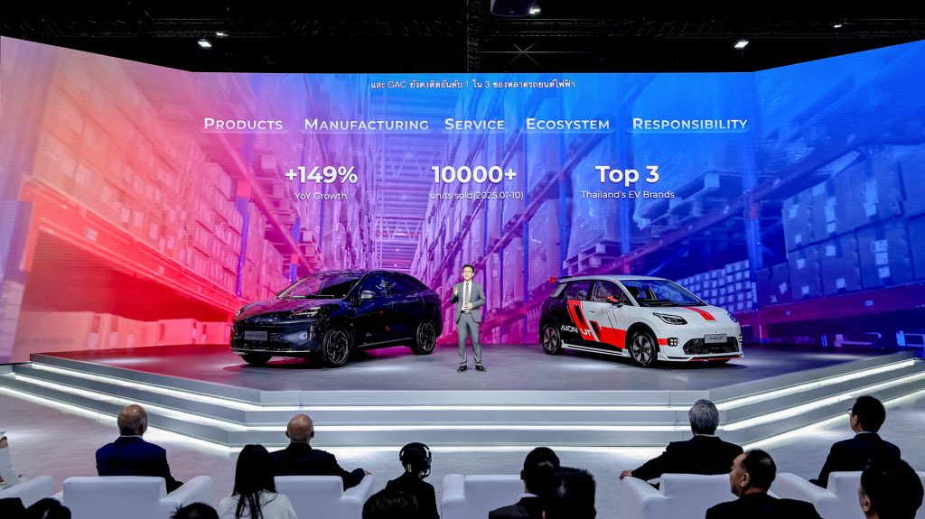 “เราไม่ใช่แค่ผู้เข้าร่วมในตลาด แต่เราคือพันธมิตรที่ช่วยยกระดับการผลิตในท้องถิ่น โดยปัจจุบันเรามีอัตราการใช้ชิ้นส่วนในประเทศ (Localization rate) สูงถึง 51% และในปีนี้จะมีรถยนต์อีกหลายรุ่นที่ผลิตในประเทศไทย ซึ่งจะช่วยให้การส่งมอบรถรวดเร็วยิ่งขึ้น” นอกจากนี้ GAC ยังเป็นผู้ผลิตรถยนต์ (OEM) รายเดียวในประเทศไทยที่มีขีดความสามารถในการซ่อมแบตเตอรี่ได้ครบทุกระดับ ทำให้การซ่อมบำรุงแบตเตอรี่มีความรวดเร็วและปลอดภัย”