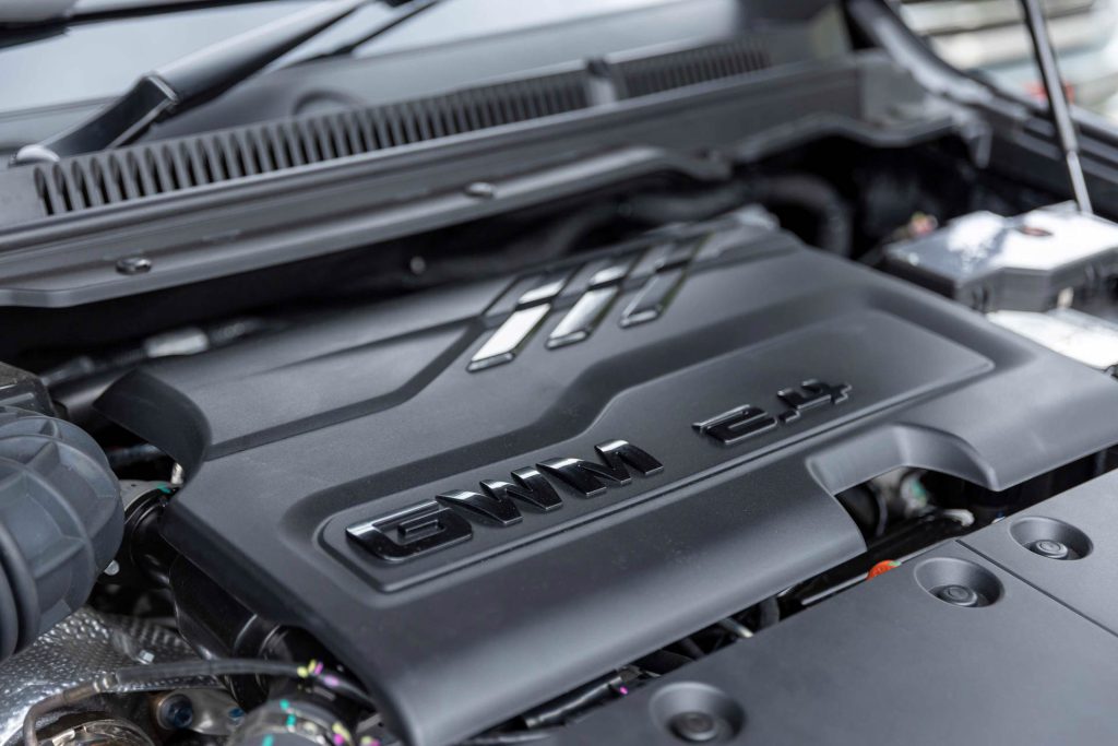 ที่ 3,600 รอบต่อนาที และแรงบิดสูงสุด 480 นิวตันเมตรแบบต่อเนื่องหรือแฟตทอร์คที่ 1,500-2,500 รอบต่อนาที  ทำให้การออกตัวและการขับขี่ในพื้นที่ที่มีความท้าทายเป็นไปได้อย่างง่ายดาย นอกจากนั้นเกียร์อัตโนมัติ 9 สปีดที่มีช่วงอัตราทดเกียร์ที่กว้างถึง 8.843 ทำให้รถสามารถเปลี่ยนเป็นเกียร์ 9 ได้ที่ความเร็วเพียง 90 กิโลเมตรต่อชั่วโมง ช่วยให้เครื่องยนต์สามารถปรับอัตราการเปลี่ยนเกียร์ให้เหมาะสมกับการขับขี่ในแต่ละสภาพถนน และสอดคล้องกับการทำงานของเครื่องยนต์เพื่อลดการใช้พลังงานที่ไม่จำเป็นออกไป เครื่องยนต์ดีเซล 2.4T ใหม่ของ GWM มาพร้อมกับเทคโนโลยีลดการสั่นสะเทือนของเครื่องยนต์และลดเสียงรบกวน NVH (Noise, Vibration, Harshness) ที่ยอดเยี่ยม ด้วยการออกแบบใหม่ของท่อไอเสีย เพลาลูกเบี้ยว