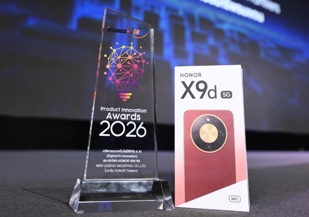 ออเนอร์(HONOR) ผู้ให้บริการอุปกรณ์อัจฉริยะชั้นนำระดับโลก ตอกย้ำความเป็นผู้นำด้านนวัตกรรมอย่างต่อเนื่อง ล่าสุดสมาร์ตโฟน HONOR X9d 5G คว้ารางวัลชนะเลิศสินค้านวัตกรรมยอดเยี่ยมแห่งปีในงานBUSINESS+ PRODUCT INNOVATION AWARDS 2026 ซึ่งนับเป็นอีกหนึ่งบทพิสูจน์ความสำเร็จในการพัฒนาเทคโนโลยีที่ตอบโจทย์การใช้งานของผู้บริโภคยุคใหม่ได้อย่างครอบคลุมและเหนือระดับ ภายในงานได้รับเกียรติจาก ฯพณฯ นุรักษ์ มาประณีต เป็นประธานมอบรางวัลโดยมี นายเมธาพัฒน์เดชะเศรษฐ์ศิริผู้จัดการฝ่ายการตลาดบริษัทนิวเลจเจินด์อินดัสเทรียลจำกัดผู้แทนและจัดจำหน่ายHONOR ประเทศไทยอย่างเป็นทางการเป็นตัวแทนรับมอบรางวัล ณ โรงแรมอินเตอร์คอนติเนนตัล กรุงเทพฯ ราชประสงค์ ทั้งนี้ รางวัลดังกล่าวจัดขึ้นโดยนิตยสาร BUSINESS+ ร่วมกับวิทยาลัยการจัดการ มหาวิทยาลัยมหิดล เพื่อเชิดชูสุดยอดสินค้าและบริการที่มีนวัตกรรมโดดเด่นและครองใจผู้บริโภคมากที่สุดประจำปี 2569