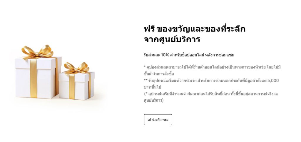 - รับของขวัญหรือคูปองส่วนลด 10% สำหรับใช้ซื้อสินค้าบน HUAWEI Official Store หลังจากซ่อมเสร็จ