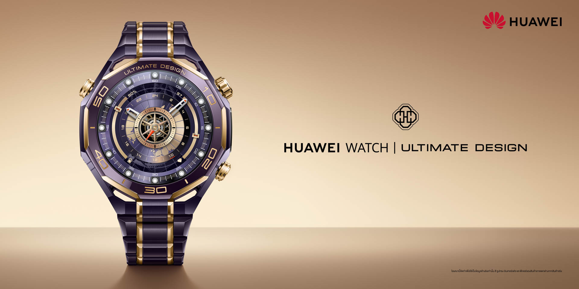หัวเว่ย คอนซูมเมอร์ บิสสิเนส กรุ๊ป (ประเทศไทย) ต้อนรับเทศกาลแห่งความสุขอย่างยิ่งใหญ่ด้วยการเปิดตัวสมาร์ทวอทช์ระดับลักชัวรี HUAWEI WATCH ULTIMATE DESIGN Royal Gold มุ่งสู่ความเป็นที่สุดด้วยดีไซน์หรูหรากับหน้าปัดขอบเซรามิกสีม่วงที่ทำจากแร่หายาก (Rare-earth) ตัดกับทองคำ 18K ตัวเรือนทำจากโลหะเหลว (Liquid Metal) ที่แข็งแกร่งทนทาน รองรับการดำน้ำลึกได้สูงสุด 150 เมตร สื่อสารใต้น้ำได้ผ่านคลื่นโซนาร์ ดูแลสุภาพแม่นยำระดับโปรด้วย Multi-sensing X-TAP Technology มอบประสบการณ์การใช้งานอย่างอิสระด้วย eSIM ตอบโจทย์ไลฟ์สไตล์สุดหรูที่สมาร์ทอย่างเหนือระดับ เตรียมวางจำหน่ายในประเทศไทยวันที่ 9 มกราคม 2569 ที่ราคา 109,990 บาท พิเศษ! รับของสมนาคุณมูลค่าสูงสุด 18,317 บาท เมื่อสั่งจองตั้งแต่วันที่ 25 ธันวาคม 2568 ถึงวันที่ 8 มกราคม 2569 ผ่านหน้าร้าน HUAWEI Experience Store และตัวแทนจำหน่ายที่ร่วมรายการ รวมถึงร้านค้าอย่างเป็นทางการบนช่องทางออนไลน์ทั้ง HUAWEI Store, Lazada, Shopee และ TikTok Shop