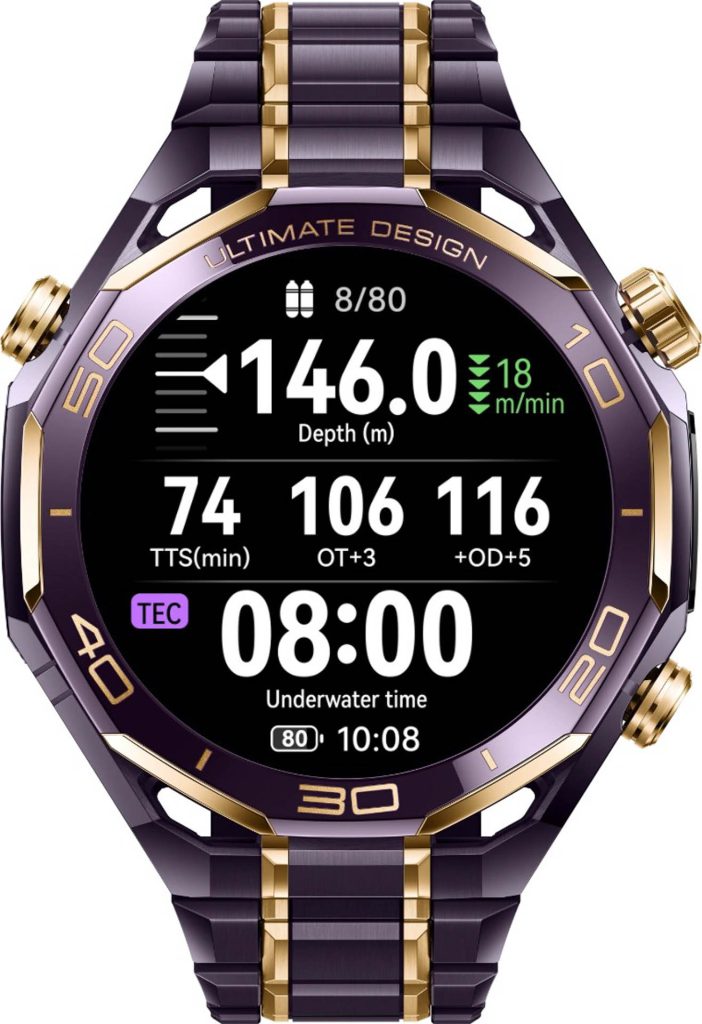 HUAWEI WATCH ULTIMATE DESIGN Royal Gold Edition มาพร้อมระบบกันน้ำใหม่ที่ยังคงฟังก์ชันเสียงสำหรับการใช้งานในชีวิตประจำวัน แต่สามารถรองรับการดำน้ำได้ลึกถึง 150 เมตร ซึ่งเป็นมาตรฐานระดับนักดำน้ำมืออาชีพ มาพร้อมเทคโนโลยีการสื่อสารผ่านโซนาร์ของหัวเว่ย ช่วยให้สามารถสื่อสารใต้น้ำระหว่างอุปกรณ์ได้ในระยะ 30 เมตร และมีฟังก์ชันส่งข้อความฉุกเฉิน (SOS) จากใต้นำได้ไกลถึงรัศมี 60 เมตร ใช้งานได้แม้ไม่มีสัญญาณ เพื่อความปลอดภัยกรณีเกิดสถานการณ์ฉุกเฉิน ช่วยให้นักดำน้ำมั่นใจและปลอดภัยยิ่งขึ้นในการสำรวจโลกใต้น้ำ