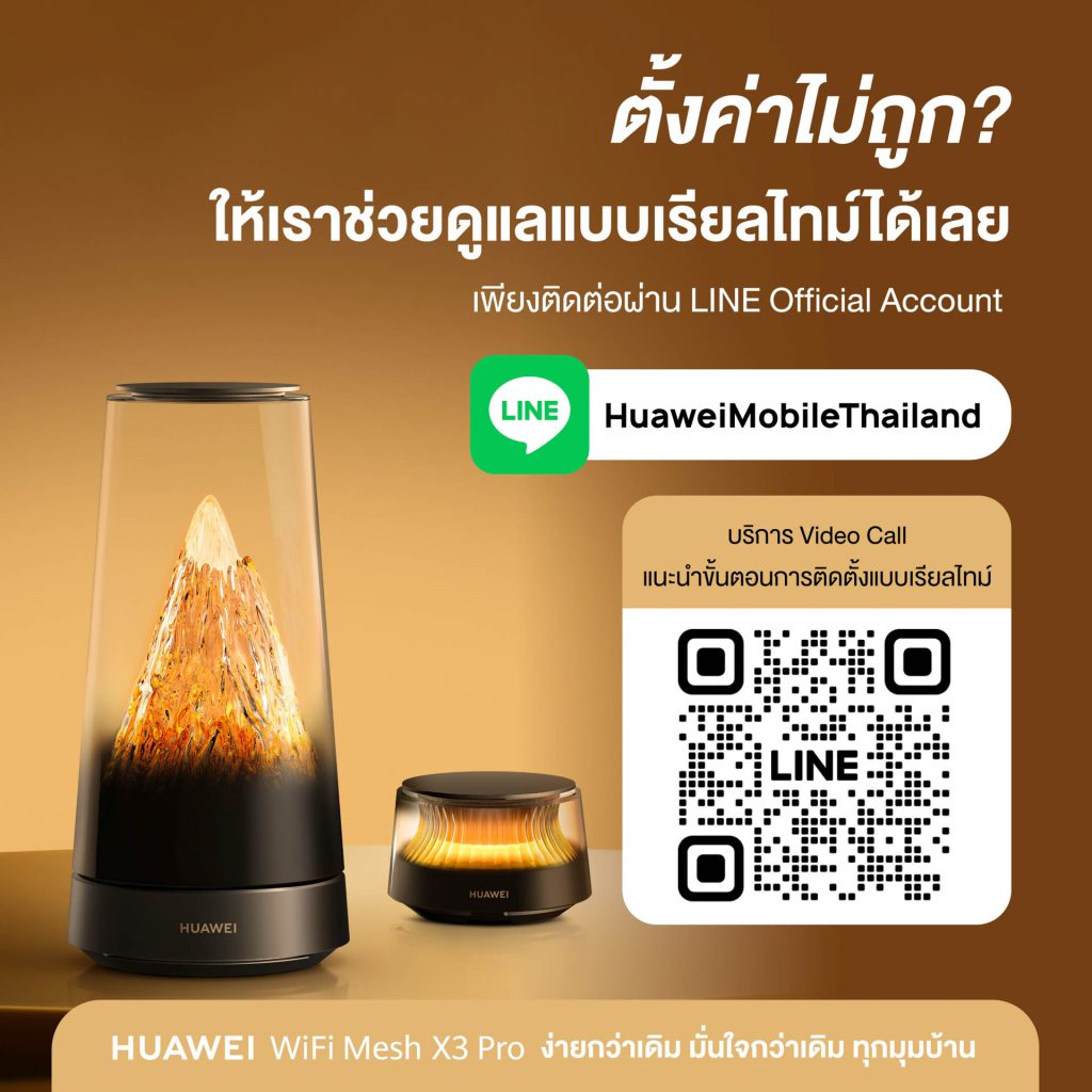 หัวเว่ยตอกย้ำผู้นำนวัตกรรมแห่งอนาคต ด้วยเราเตอร์ดีไซน์พรีเมียมที่ได้รับความสนใจอย่างล้นหลามนับตั้งแต่เปิดตัวในไทยเมื่อเร็วๆ นี้กับ HUAWEI WiFi Mesh X3 Pro เราเตอร์ที่สวยจนเป็นอุปกรณ์ตกแต่งบ้านได้ ดึงดูดสายตาผู้ใช้ยุคใหม่ แถมยังเร็ว แรง โดนใจสายคอนเทนต์ด้วยขุมพลัง WiFi 7 ความเร็วสูงสุด 3.6 Gbps ที่สำคัญยังสามารถกระจายสัญญาณครอบคลุมทั่วทั้งบ้าน ตอบโจทย์ที่อยู่อาศัยได้ทุกขนาดไม่ว่าจะอาศัยอยู่ในคอนโดมิเนียม บ้านเดี่ยว หรือวิลล่าหรูขนาดใหญ่ ทั้งหมดนี้ในราคาเพียง 4,990 บาท เท่านั้น นอกจากประสิทธิภาพและดีไซน์ที่เหนือระดับ หัวเว่ยยังให้ความสำคัญกับประสบการณ์หลังการขาย โดยมอบบริการวิดีโอคอลแนะนำการติดตั้งฟรีแบบเรียลไทม์ผ่าน LINE Official Account เพื่อช่วยดูแลผู้ใช้งานทุกขั้นตอนอย่างใกล้ชิด ให้สามารถติดตั้งและใช้งานได้อย่างมั่นใจ