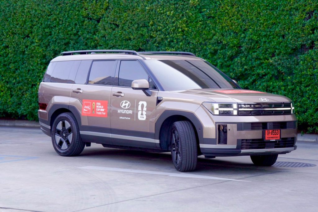 สำหรับอีเวนต์ครั้งนี้ ฮุนไดจัดทัพยนตรกรรม 4 รุ่นร่วมขบวนคาราวานแห่ถ้วย FIFA World Cup Trophy ของจริง ในประเทศไทยอย่างยิ่งใหญ่ โดยรถยนต์แต่ละรุ่นถูกจัดวางบทบาทอย่างสมศักดิ์ศรี เริ่มจาก Hyundai Palisade รถ D-SUV ระดับแฟลกชิพ ที่ได้รับเกียรติสูงสุดในการนำถ้วยรางวัล FIFA World Cup Trophy ของจริง ถ้วยแห่งเกียรติยศที่เคลือบด้วยทองคำแท้ 18 กะรัต อันเป็นสัญลักษณ์สูงสุดของความสำเร็จในโลกฟุตบอล ขณะที่ Hyundai all-new SANTA FE Hybrid ทำหน้าที่ดูแลการเดินทางของนักเตะระดับตำนาน จิลแบร์โตซิลวา (Gilberto Silva) อดีตกองกลางตัวรับทีมชาติบราซิล ชุดแชมป์โลกปี 2002 และขุนพล “ไร้พ่าย” ของอาร์เซนอล ผู้ขึ้นชื่อเรื่องความนิ่ง การตัดเกมอันเฉียบขาด และภาวะผู้นำในสนาม