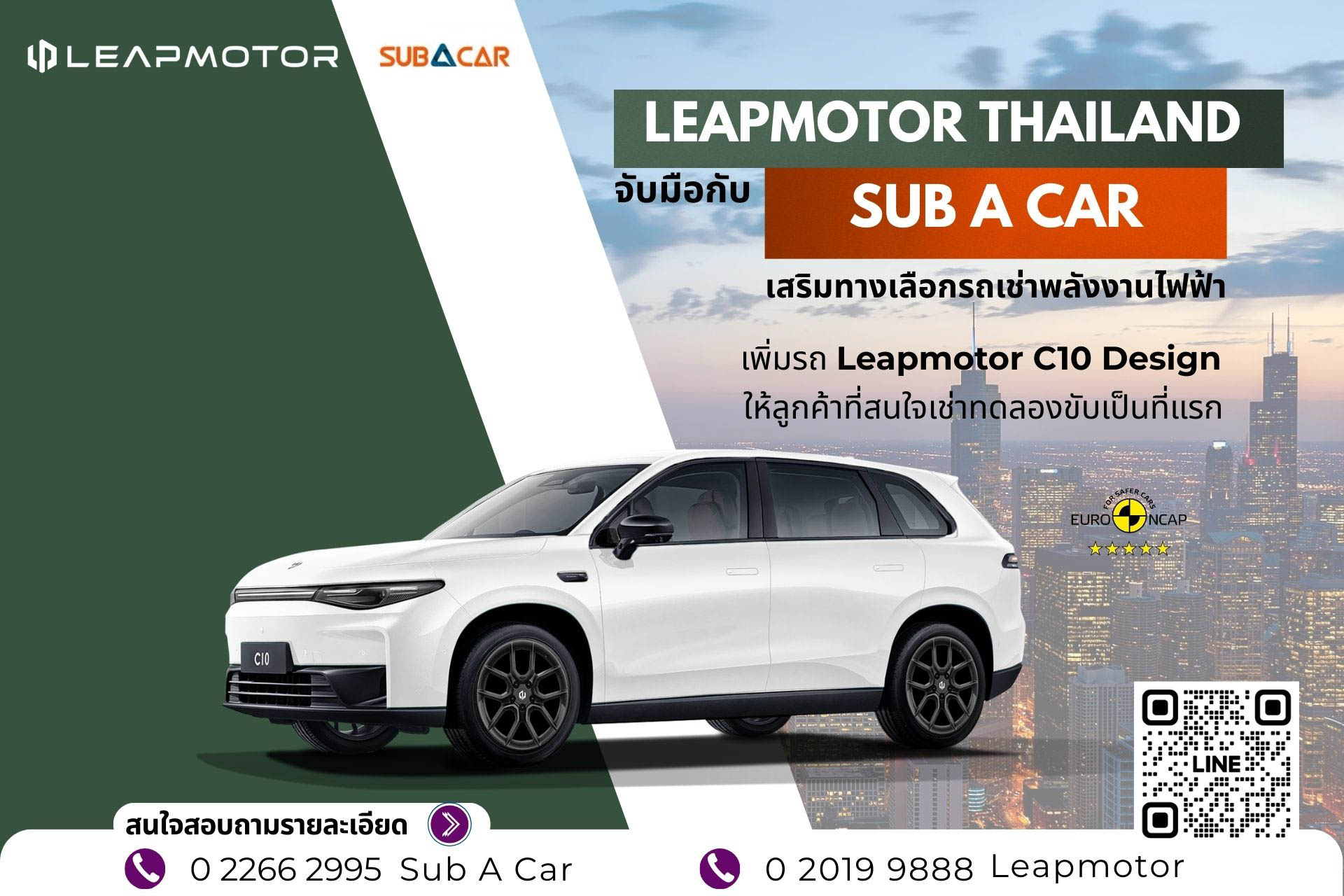 ความร่วมมือครั้งนี้นับเป็นครั้งแรกในตลาดที่ลูกค้าจะสามารถเช่าทดลองขับรถยนต์พลังงานไฟฟ้ารุ่น Leapmotor C10 Design ภายใต้แคมเปญ “Test Drive & Rent สัมผัสรถ EV ก่อนตัดสินใจ พร้อมสร้างประสบการณ์การก่อนตัดสินใจซื้อ ด้วยการเปิดโอกาสให้ทดลองใช้งานจริงในชีวิตประจำวันซึ่งนานกว่าการทดลองขับรูปแบบเดิม เพื่อสัมผัสถึงสมรรถนะและฟังก์ชันต่าง ๆ ของรถยนต์อย่างเต็มที่ โดยรถยนต์พลังงานไฟฟ้ารุ่น Leapmotor C10 Designนับเป็นหนึ่งในสุดยอดยนตรกรรมอัจฉริยะเพื่อชีวิตที่สมบูรณ์แบบ ลูกค้าจะได้สัมผัสกับรถที่พัฒนาบนเทคโนโลยี Cell-to-Chassis ระบบขับเคลื่อนล้อหลัง และช่วงล่างที่ได้รับพัฒนาร่วมกับวิศวกรจาก Stellantis เพื่อเพิ่มความมั่นใจในการขับขี่และความปลอดภัยในระดับมาตรฐานของรถในยุโรป หลังคาพาโนรามิครูฟ ห้องโดยสารกว้าง นั่งสบายคุณภาพระดับพรีเมียม การันตีด้วยรางวัล CMF Design Award ด้านการออกแบบวัสดุ สี และพื้นผิว มั่นใจได้ในความปลอดภัยและเป็นมิตรกับทุกคนในครอบครัว ด้วยเบาะนั่งปราศจากสารอันตรายกับเด็กและยังได้รับการรับรองมาตรฐานสากลจาก Oeko-Tex และอีกหนึ่งฟังก์ชัน Nap Mode ที่จะเปลี่ยนรถให้เป็นพื้นที่พักผ่อนส่วนตัวด้วยการปรับเอนเบาะอัตโนมัติ พร้อมระบบ Ambient Light ที่สามารถเปลี่ยนสีได้ถึง 64 สี และระบบกรองฝุ่น PM 2.5 เพียบพร้อมไปด้วยระบบ ADAS และระบบช่วยในการขับขี่อีกด้วย