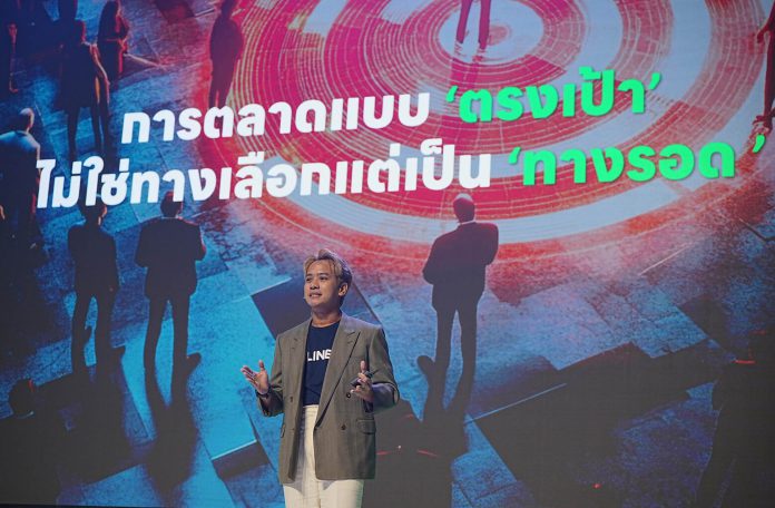นายจิรพัฒน์เดชดนูหัวหน้าทีม LINE Ads Product & Marketing Strategy จาก LINE ประเทศไทย กล่าวว่า “การทำการตลาดแบบตรงเป้า ผู้ประกอบการต้องปรับแนวคิดก่อนลงมือทำ เริ่มจากใส่ใจหาความชื่นชอบและพฤติกรรมของลูกค้าให้ลึกยิ่งขึ้นเพื่อความเข้าใจ รู้จักปรับตัวตามกลุ่มเป้าหมาย เพราะการแข่งขันวันนี้ไม่ได้อยู่แค่เรื่องราคา แต่แบรนด์ต้องเข้าใจและปรับตัวตามเพื่อตอบโจทย์ลูกค้าได้จริง ที่สำคัญผู้ประกอบการต้องเลือกใช้เครื่องมือทางการตลาดแบบตรงเป้าให้เป็น เพื่อสร้างทางรอดให้ธุรกิจเข้าถึงลูกค้าได้อย่างแม่นยำ ตรงกลุ่ม และเติบโตได้ในระยะยาว” ภายในงาน LINE ยังได้แนะแนวทางการเข้าถึงลูกค้าให้ถูกกลุ่มเป้าหมายคลายปัญหาคาใจ SME ไทยด้วยโซลูชันปั้นการตลาดแบบตรงเป้าไม่ว่าจะเป็น
