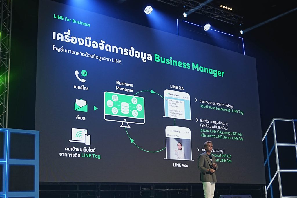 ไม่เพียงแค่นั้น LINE ยังได้แนะนำอีกหนึ่งเครื่องมือสำคัญ ช่วยให้ธุรกิจนำ Data ไปใช้ได้สะดวกยิ่งขึ้นอย่าง Business Manager ที่ช่วยรวบรวมข้อมูลกลุ่มเป้าหมายจากหลากหลายช่องทางบน LINE มาจัดเก็บ วิเคราะห์ร่วมกันได้ เพื่อให้ร้านค้าสามารถนำกลับไปออกแบบการสื่อสารการตลาดกลับไปถึงกลุ่มเป้าหมายได้แม่นยำและครอบคลุม เช่น แบรนด์ AES Class Clinic ที่นำข้อมูลลูกค้ากลุ่มเป้าหมายที่ได้จาก Business Manager ไปต่อยอดยิงโฆษณาผ่าน LINE Ads ทำให้อัตราการคลิกโฆษณาเพิ่มขึ้นถึง 4 เท่า ต้นทุนในการหาเพื่อนใหม่ลดลงกว่า 40% และจำนวนแชทใน LINE OA เพิ่มขึ้นถึงเท่าตัว