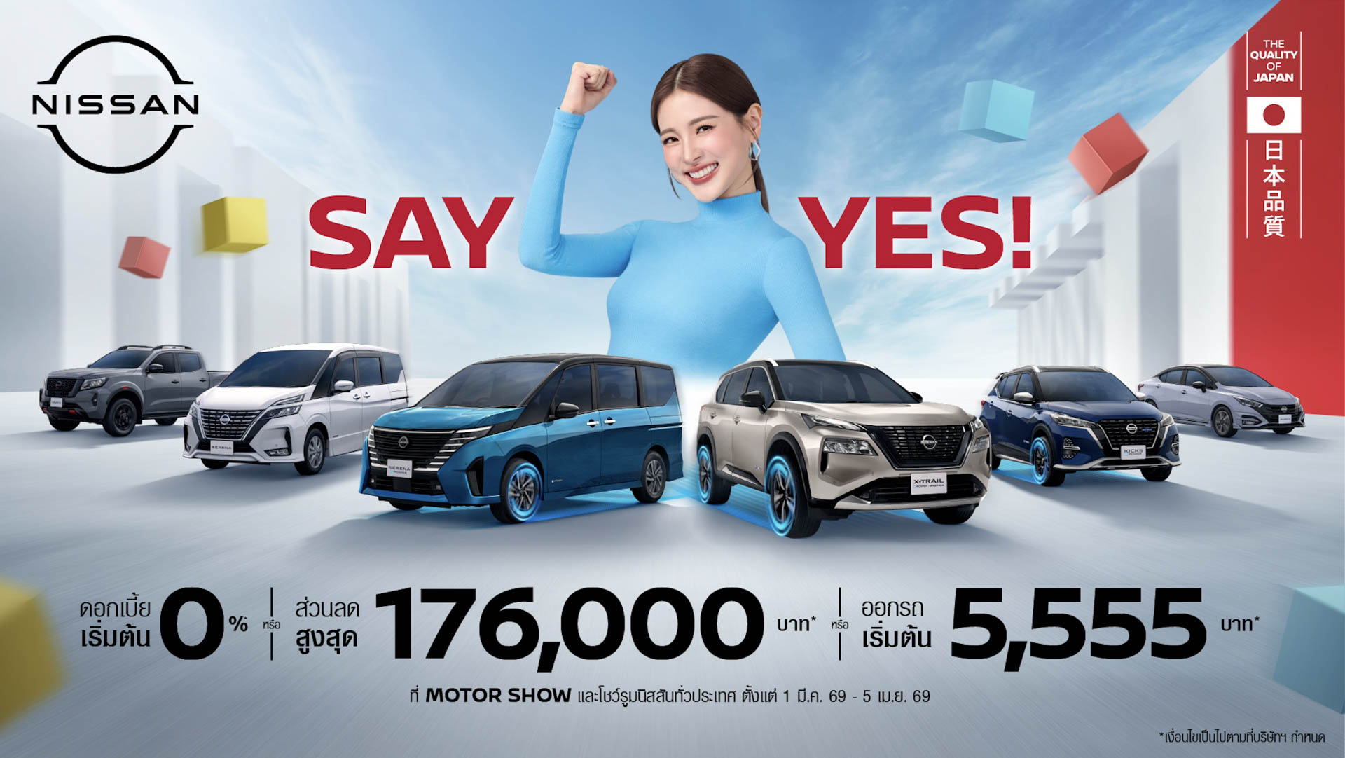 นิสสันประเทศไทย เตรียมสร้างความตื่นเต้นอีกครั้งในงาน บางกอกอินเตอร์เนชั่นแนลมอเตอร์โชว์ครั้งที่47 นำรถยนต์ยอดนิยม และรถยนต์อี-พาวเวอร์ครบรุ่นร่วมจัดแสดงในงาน พร้อมเผยโฉมนิสสัน เซเรน่า อี-พาวเวอร์ สีใหม่ จำนวนจำกัด และตื่นเต้นไปอีกขั้นกับการเปิดตัวรถยนต์อี-พาวเวอร์ รุ่นใหม่ล่าสุด ที่มาพร้อมสมรรถนะการขับขี่สุดสนุก โดยภายในงาน นิสสันยังได้จัดแคมเปญโปรโมชั่นสุดพิเศษ SAY YES! กับข้อเสนอสุดคุ้ม ทั้งดอกเบี้ยต่ำ ไปจนถึงผ่อนสบายสูงสุด 84 เดือน และพิเศษสำหรับเซเรน่า อี-พาวเวอร์ รับส่วนลดพิเศษสูงสุด 100,000 บาท