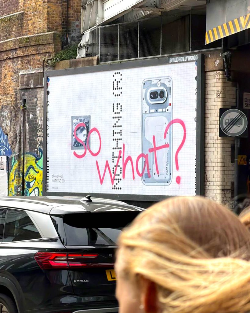สำหรับ Nothing สีชมพูไม่ใช่แค่เพียงอีกหนึ่งตัวเลือกของสีแต่คือการคารวะ ต่อเทคโนโลยีที่เน้นการแสดงออก และมองโลกในแง่ดีมากกว่าความรู้สึกที่เป็นกลาง ทั้งยังเป็นการยอมรับในบทบาทของศิลปะดนตรีแฟชั่นและป๊อปคัลเจอร์ที่มีส่วน สำคัญในการสร้างแรงบันดาลใจให้กับภาษาการออกแบบของเราเพื่อเป็นการเฉลิม ฉลองการเปิดตัวสีชมพูในครั้งนี้ Nothing ได้จัดกิจกรรมสนุกๆ ทั่วลอนดอน เช่น การพ่นกราฟฟิตี้ทับบนโปสเตอร์โฆษณาในย่านใจกลางลอนดอนโดยสอดแทรกการอ้างอิงทางวัฒนธรรมที่เกี่ยวข้องกับสีชมพู และการเปลี่ยนโฉมหน้าร้าน Nothing Store ในย่านโซโฮ (Soho) ด้วยงานกราฟฟิตี้สีชมพูสะดุดตา Pink graffiti takeover
