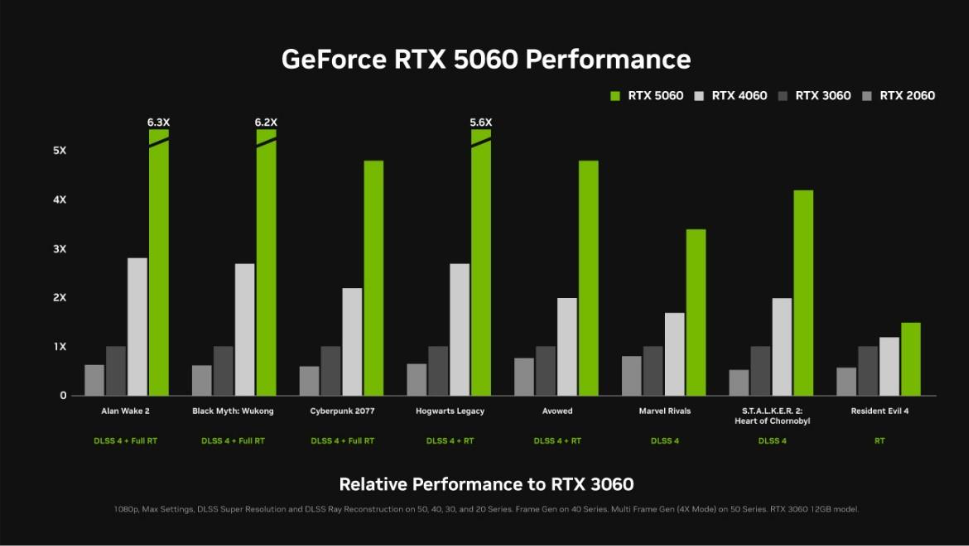 ประสิทธิภาพของ RTX 5060 และ 5060 Ti กระโดดขึ้นอย่างชัดเจนเมื่อเทียบกับรุ่นก่อนหน้า