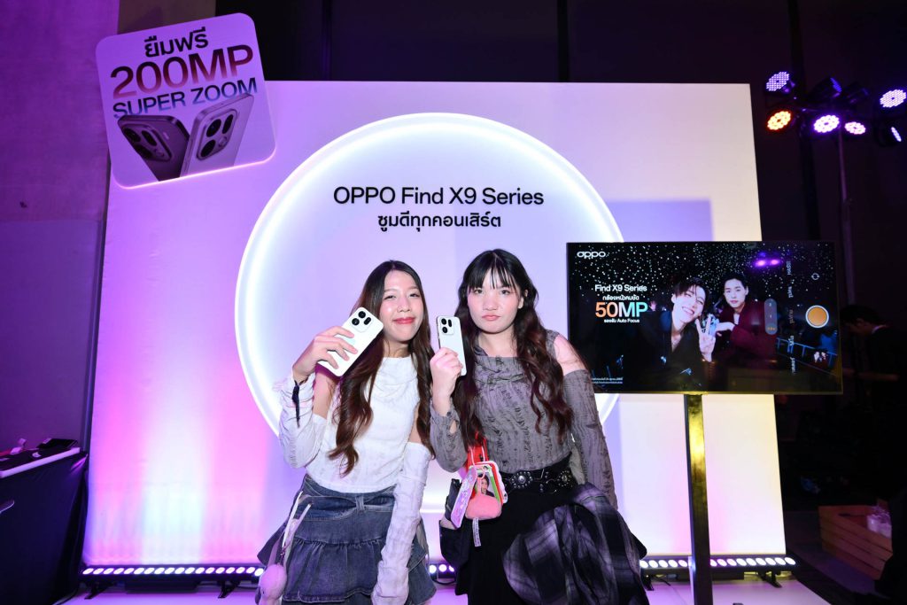อีกหนึ่งไฮไลต์สุดพิเศษของงานคือกิจกรรมยืมเครื่อง OPPO Find X9 Pro ฟรี! ให้แฟน ๆ ได้ยืมสมาร์ตโฟนรุ่นท็อปมาทดลองถ่ายภาพและวิดีโอระหว่างคอนเสิร์ต พร้อมสัมผัสความสามารถในการซูมดีทุกคอนเสิร์ต ด้วยกล้อง 200MP Hasselblad Telephoto และ ซูมไกลด้วย 120x Super Zoom มอบความคมชัดเหมือนวาร์ปไปอยู่หน้าเวทีจริง ๆ
