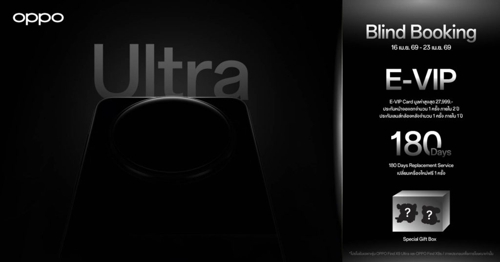 สามารถติดตามรายละเอียดเพิ่มเติม และเตรียมสัมผัสพลังความอัลตราครั้งแรกของประเทศไทยของ OPPO Find X9 Ultra และ OPPO Find X9s ไปพร้อมกันได้ในวันที่ 23 เมษายน 2569 เวลา 16.00 น. เป็นต้นไป ทาง Facebook, YouTube และ TikTok ของ OPPO Thailand เท่านั้น
