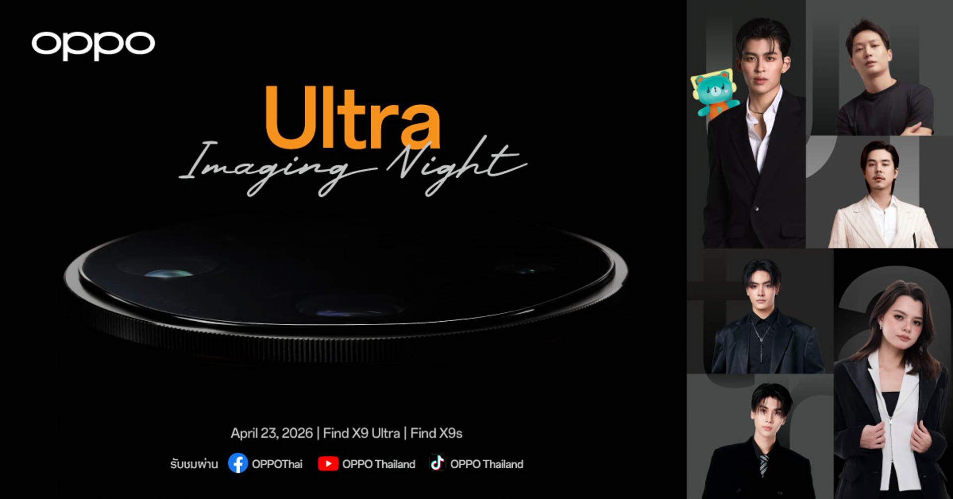 ออปโป้ ประเทศไทย ผู้นำตลาดสมาร์ตโฟน เตรียมเปิดตัวสมาร์ตโฟนรุ่นใหม่ล่าสุด ชวนสัมผัสประสบการณ์การถ่ายภาพระดับมืออาชีพนี้ได้ในงาน “Ultra Imaging Night OPPO Find X9 Ultra | OPPO Find X9s” โดยภายในงานยังยกทัพนวัตกรรมรุ่นใหม่ล่าสุด นำโดย OPPO Find X9 Ultra และ OPPO Find X9s พร้อมด้วย OPPO Enco Clip2, OPPO Enco Air5 Pro และ OPPO Watch X3 อุปกรณ์อัจฉริยะที่เติมเต็มประสบการณ์ทั้งด้านความบันเทิง และสุขภาพอย่างครบถ้วน