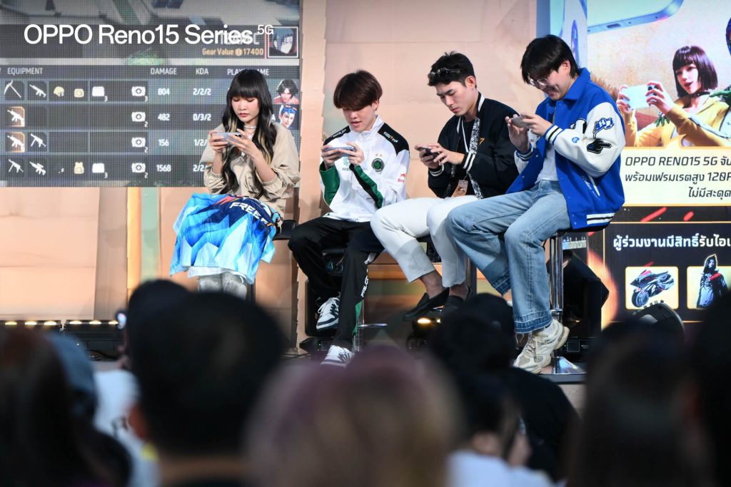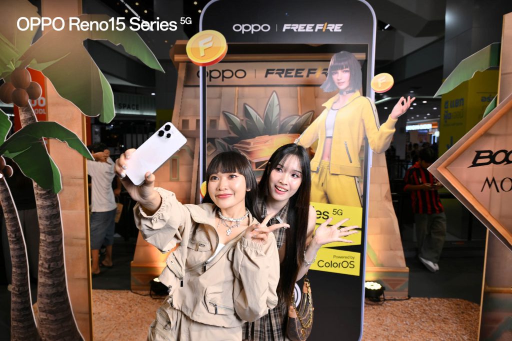 บรรยากาศภายในงานนี้เต็มไปด้วยความคึกคัก ผู้เข้าร่วมกิจกรรมได้ร่วมออกล่าขุมทรัพย์ตามภารกิจต่าง ๆ ภายในบูท เพื่อลุ้นรับไอเทมสุดพิเศษจาก OPPO และ Free Fire นอกจากนี้ ยังมีกิจกรรมที่น่าสนใจจาก OPPO อีกมากมาย โดยเฉพาะกิจกรรมเปิดให้ทดลองประสิทธิภาพเล่นเกมบนสมาร์ตโฟน OPPO Reno15 Series 5G รวมถึงกิจกรรมถ่ายรูปเช็คอินกับฉากเท่ ๆ แชร์อวดเพื่อนลงโซเชียล และกิจกรรม Lucky Draw ลุ้นรับสมาร์ตโฟน OPPO Reno15 Series 5G นอกจากกิจกรรมในบูทแล้ว ยังมีเวทีกิจกรรมบนเวทีใหญ่ที่คอยสร้างสีสัน และความสนุกให้กับผู้เข้าร่วมงานอย่างการแข่งขัน Hunter Tournament บนเวทีใหญ่ ซึ่งเปิดโอกาสให้เหล่าเกมเมอร์ได้พิสูจน์ประสิทธิภาพของ OPPO Reno15 5G ผ่านการแข่งขันจริงที่เน้นความเสถียร และความลื่นไหล ท่ามกลางบรรยากาศที่เต็มไปด้วยความตื่นเต้นและเสียงเชียร์จากผู้เข้าร่วมงานตลอดทั้งวัน