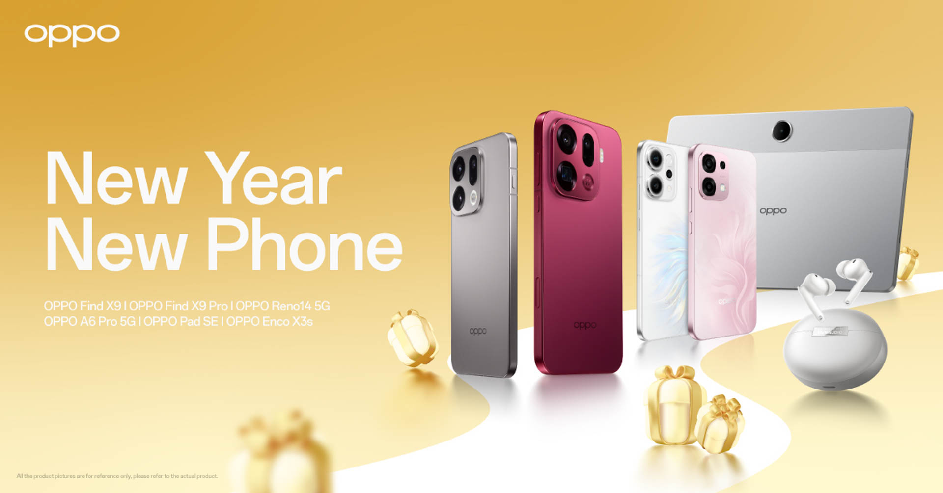 OPPO แบรนด์เทคโนโลยีชั้นนำระดับโลก มอบความสุขด้วยสมาร์ตโฟนและอุปกรณ์ IoT ที่เลือกได้ส่งท้ายปี ผ่านโปรโมชันแคมเปญ New Year New Phone มาพร้อมโปรแรง ทั้งลดทั้งแถม ตั้งแต่วันที่ 28 พฤศจิกายน 2568 – 4 มกราคม 2569 ที่ OPPO Brand Shop และตัวแทนจำหน่ายทั่วประเทศ