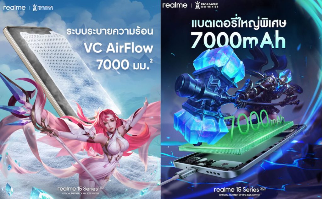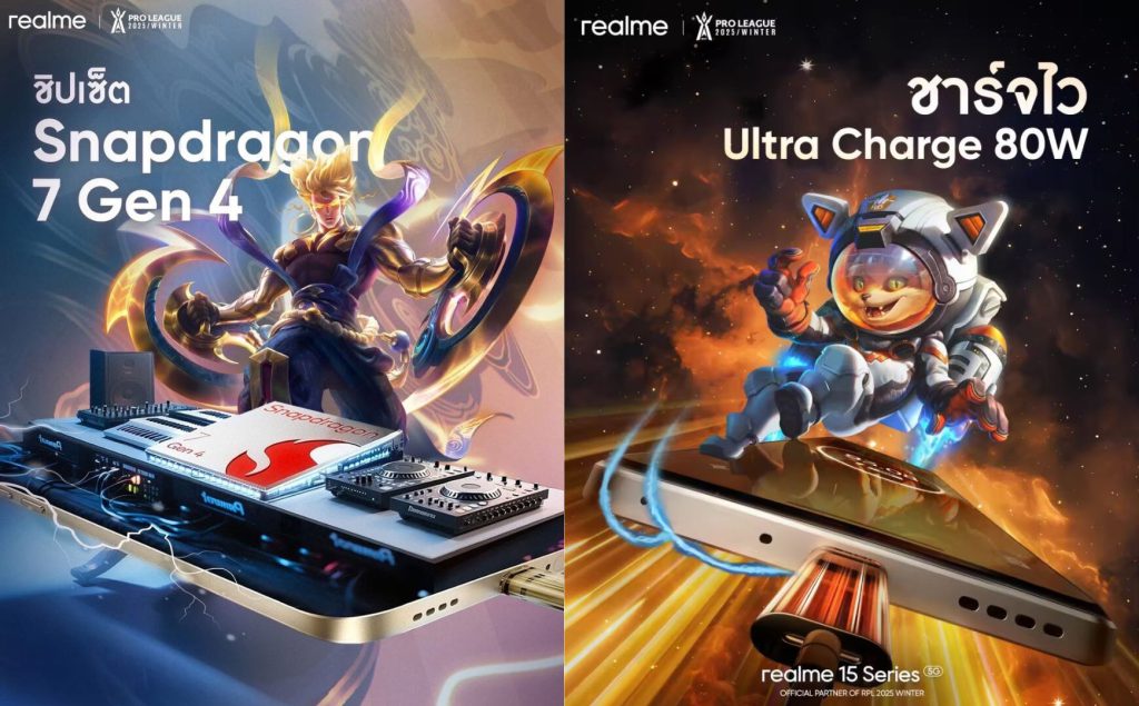 ด้วยพลังของเทคโนโลยีและความมุ่งมั่นในการยกระดับประสบการณ์เกมมิ่งให้เข้าถึงคนรุ่นใหม่ realme เดินหน้าสนับสนุนวงการอีสปอร์ตไทยอย่างต่อเนื่อง การร่วมเป็นส่วนหนึ่งของ RoV Pro League 2025 Winter สะท้อนวิสัยทัศน์ของแบรนด์ที่พร้อมผลักดันเกมเมอร์ให้ปลดปล่อยศักยภาพอย่างเต็มที่ ทั้งในสนามแข่งขันและในชีวิตจริง พบกันที่ บูธ realme (ก่อนทางเข้าเช็กอินงาน) วันที่ 25–26 ตุลาคม 2568 ณ Bitec Live ไบเทค บางนา ตั้งแต่เวลา 10.00 น. เป็นต้นไป เพื่อมาร่วมเชียร์ ร่วมเล่น และสัมผัสพลังเกมมิ่งระดับโปรลีกจาก realme 15 Series 5G สมาร์ตโฟนที่เร็ว แรง และลื่นไหลในแบบที่เกมเมอร์ตัวจริงต้องมี