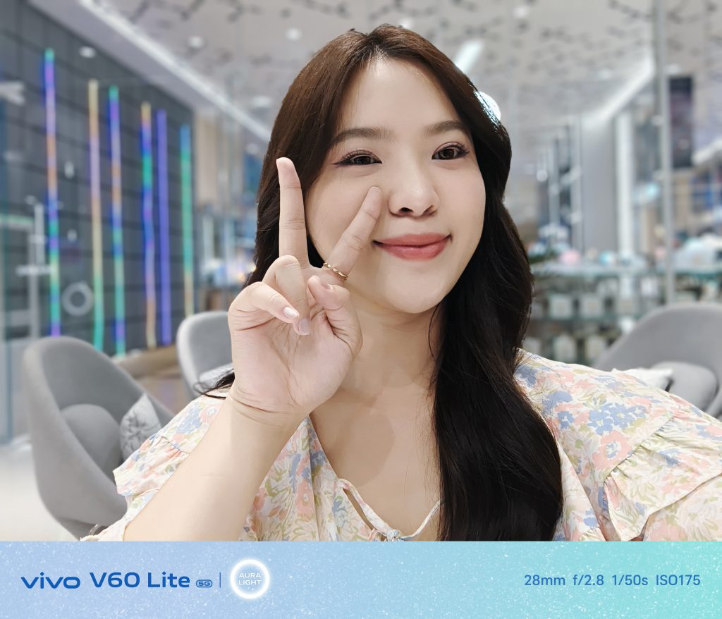 กล้องหน้า ความละเอียด 32MP ทำออกมาได้ดีสมชื่อความเป็น vivo ให้สีที่มีความสดใส และยังมีโทนสีภาพที่สวยงามเพิ่มเติมมาให้ด้วยซึ่งเป็นโทนฟิล์ม พร้อมหน้าจอแบบกล้องฟิล์ม ทำให้ได้ฟีลไปอีกแบบนึงเลย จะสภาพแสงไหน vivo V60 Lite ก็เอาอยู่สบายๆ เลย