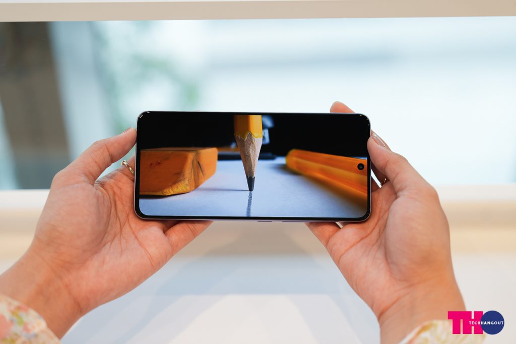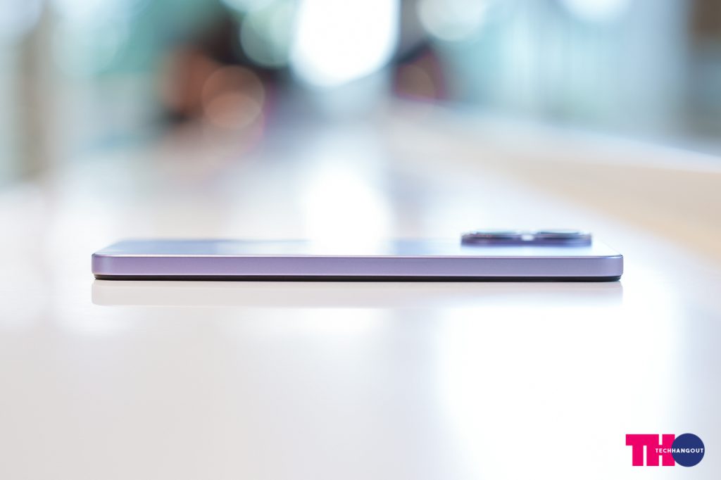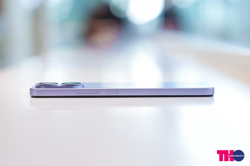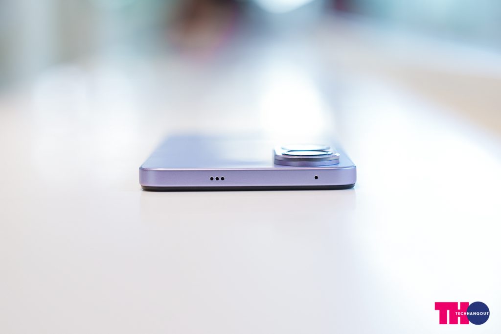ด้านขอบบนเราจะเห็นช่องไมค์สำหรับดูดเสียงต่างๆ เพียงอย่างเดียว กลืนกับสีของตัวเครื่อง vivo V60 Lite