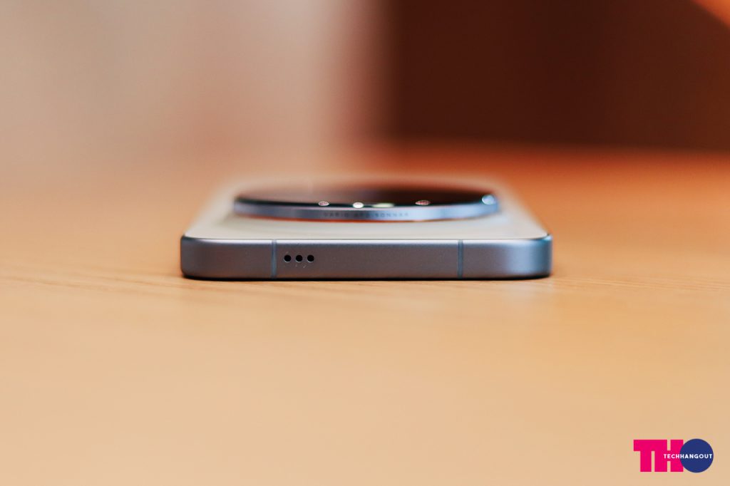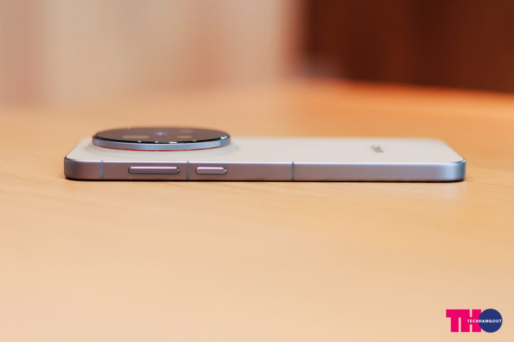 ขอบเครื่องนั้นมาพร้อมกับขอบตัดเหลี่ยมตรง จับถือง่าย และ ในรุ่น X300 Pro มีปุ่มสำหรับการตั้งค่าคียลัดมาให้ด้านบน วัสดุโทนสีเน้นความด้านเรียบๆ มีพื้นผิวดูดีครับ เล่นไปกับสีตัวเครื่องด้วยเช่นกัน ในรุ่น X300 สีม่วงก็จะเน้นไปโทนสีม่วงอ่อนๆ ส่วนทางด้านสี Dune Brown ขอบเครื่องก็สีเทาๆเงินๆเข้ากับฝาหลังครับถือว่าสวย และงานประกอบความเนียนเวลาจับถือทำได้ดีทั้ง 2 รุ่น